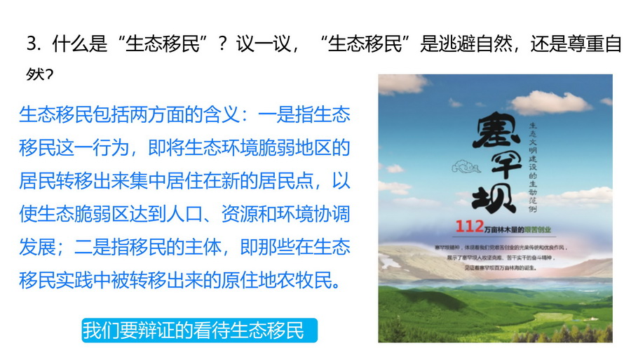 什么是“生态移民”?议一议,“生态移民”是逃避自然,还是尊重自然?