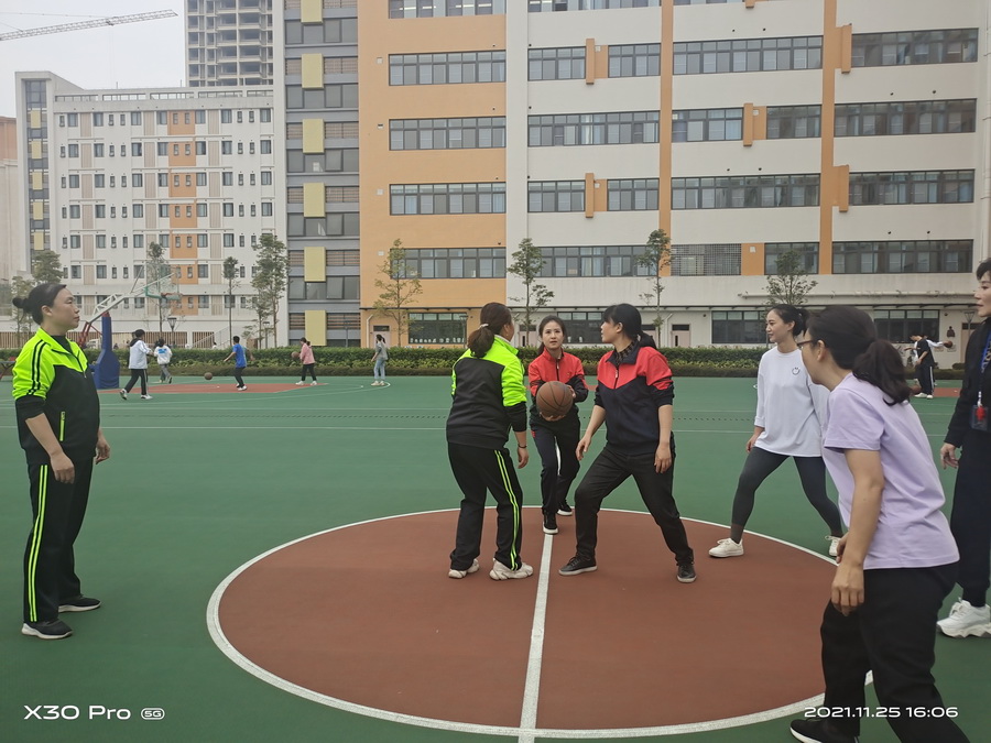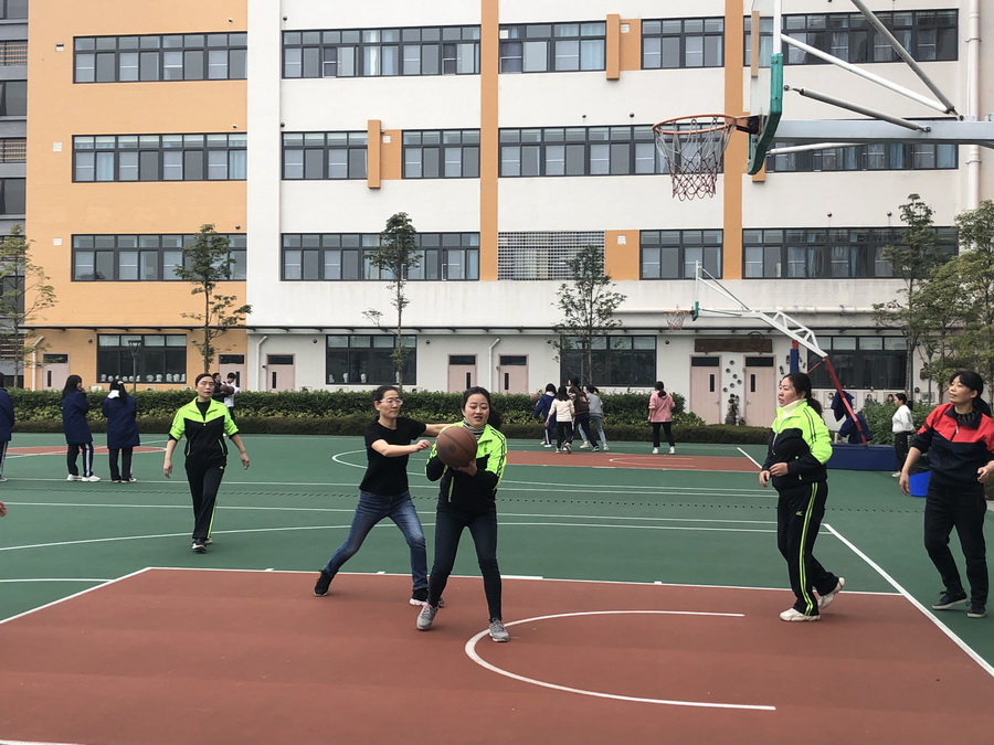 比赛中,各队球员高度配合,频现神级妙传,给全校师生带来了一场场堪称专业级别的比赛。场上男老师的激烈对抗,各种经典投球惊艳围观群众;女老师的火热“团团抱”,引发场外阵阵欢呼。众多师生驻足观看,毫不保留地提供超大音量的加油呐喊声。全校教职员工在比赛中展现出浓浓的生活热情与和谐的大家庭氛围。