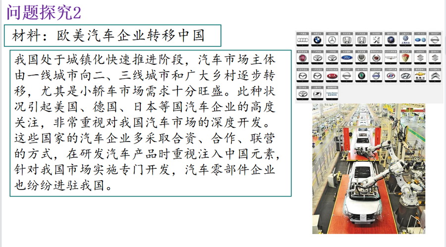 学生活动:小组合作的形式探讨日本汽车产业的转移对区域发展的影响。