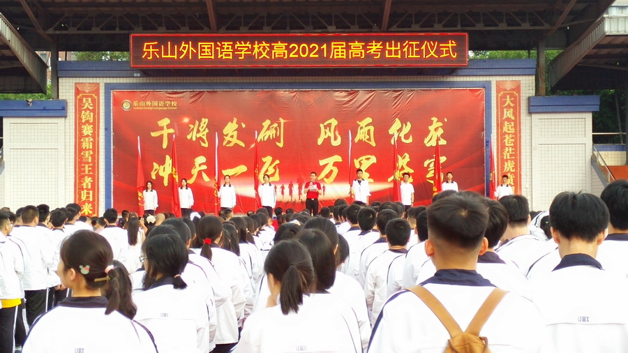 乐山外国语学校以“立德立事立家国,达己达人达天下”为办学理念,倡导博大的社会责任感和教育担当使命感,秉承“立德 弘毅 厚学 拓新”的校训,深入贯彻国家素质教育和新课程改革精神,实施“因材施教、分类指导、统筹兼顾、全面提高”的多层次教育教学模式,致力于培养有道德修养、有远大理想、有综合能力、有良好体质、有积极心态的优秀学子,实现“让每一个生命成为更好的自己”的育人目标。高2021届全体师生凭借着“敢于亮剑、勇于担当、善于拼搏、乐于奉献、勤于分析”的乐外精神,努力拼搏,讲格局、谋大业、铸精神、融团队、求科学、重务实,不屈不挠、稳扎稳打,终于迎来了天道酬勤的光辉时刻!