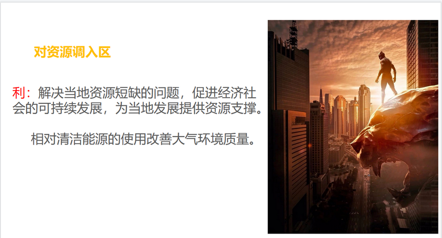 小结:实施资源跨区域调配对调入区、调出区、沿线区均会产生利弊影响,学会辩证分析问题。