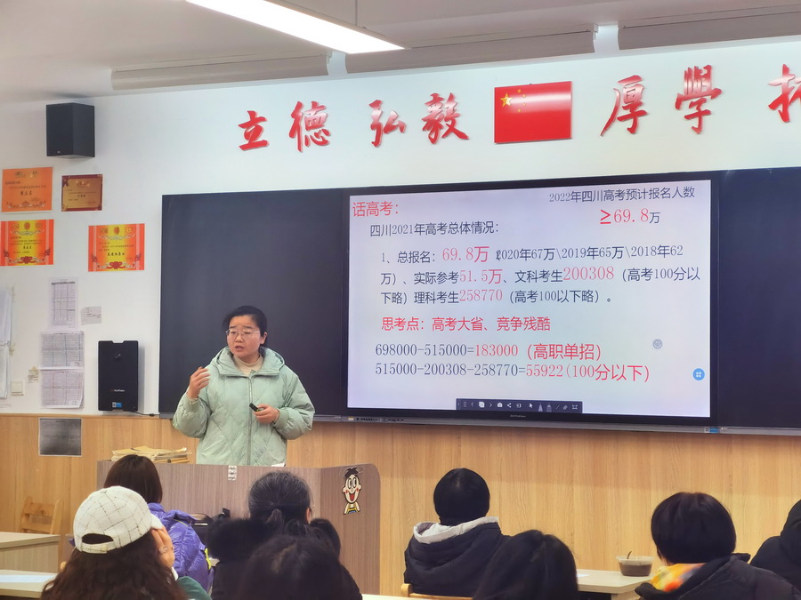 著名教育学家苏霍姆林斯基有言:“教育的效果取决于学校教育和家庭教育影响的一致性。”诚然,家庭和学校都是教育的重要阵地。为了让二者形成教育合力,以实现“家校共育润花开,携手共进促成长”的目标,乐山立志达高级中学高2022届于2022年1月8号下午召开了年级家长会。