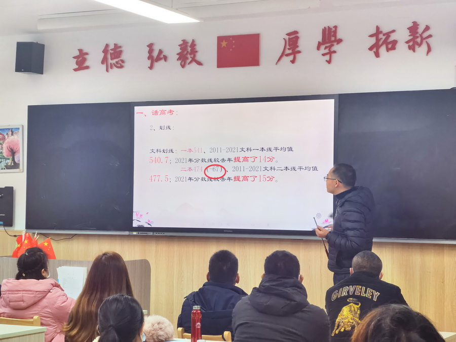 各班班主任围绕高三“一调”成绩、2021年高考数据分析、2022年高考准备工作、家校共育、假期安排等内容,与家长进行了细致的交流。