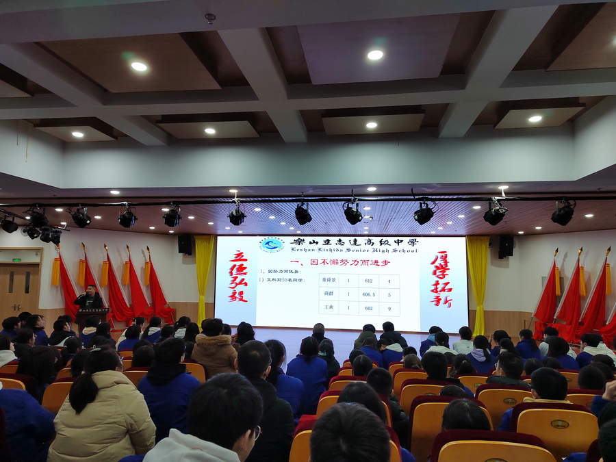 奋楫扬帆正当时,厉马秣兵再前行。为增强高三学子决胜高考的信心,锁定合理的冲刺目标,激励同学们以更加饱满的热情和昂扬的斗争投身到接下来150天紧张的高考复习备考中去,2022年1月9日-10日,我校高三年级学生在北辰楼四楼讲学厅召开了“一调”分析及表彰大会,副校长张丰等学校领导及高三年级全体师生参加本次会议。会议由年级助理谢丹主持。