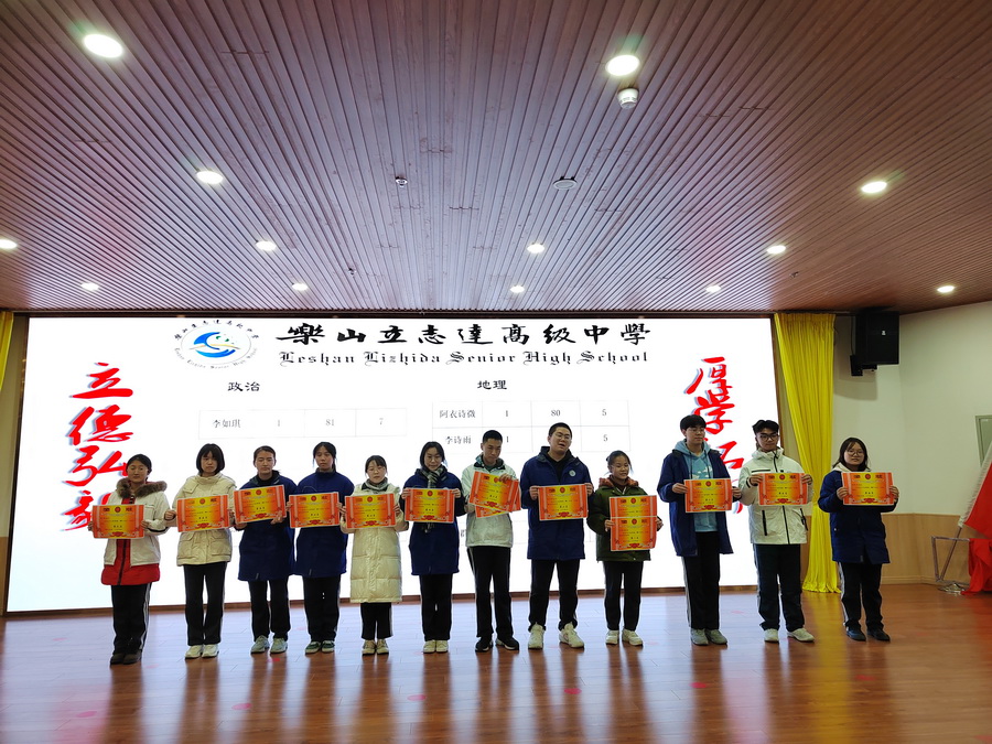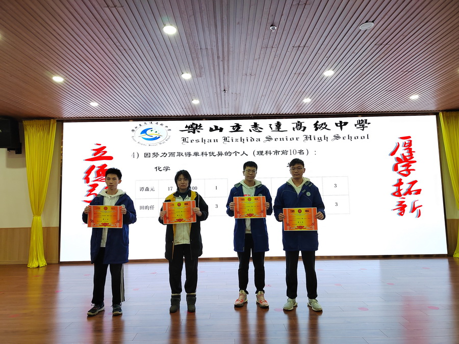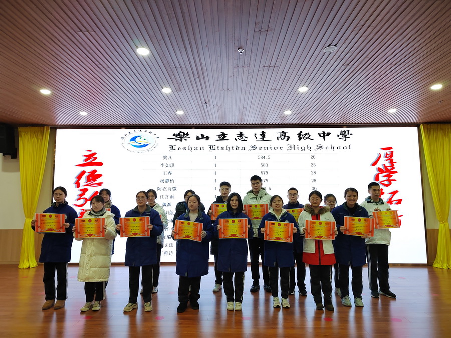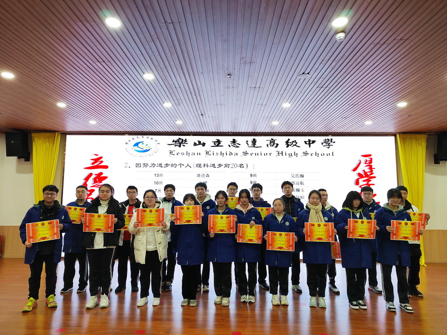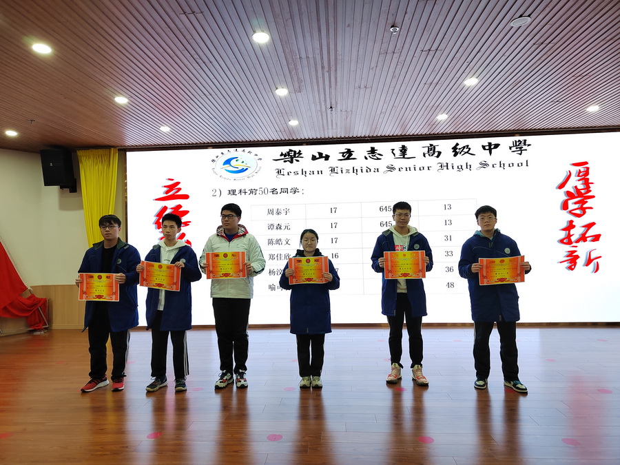 百舸争流齐奋进,鸿鹄展志再凌云。山可以很高,但高不过勇于攀登的人,路可以很长,但长不过不停迈动的脚步,所有优秀的背后,都是苦行僧般的自律。努力付出,耐心坚持,才能有收获。在本次“一调”考试中,高三年级的教育教学工作取得了显著的成绩,一大批优秀学生敢于争先,脱颖而出。为了表彰先进,树立典型,弘扬勤奋好学积极进取的优良学风,充分发挥优秀学生的模范带头作用,鼓励学生在接下来的学习中继续奋进,经学校和年级级组研究决定,对乐山市文理科总分前五十名、单科前十名、进步突出的同学进行奖励并颁发荣誉奖状。