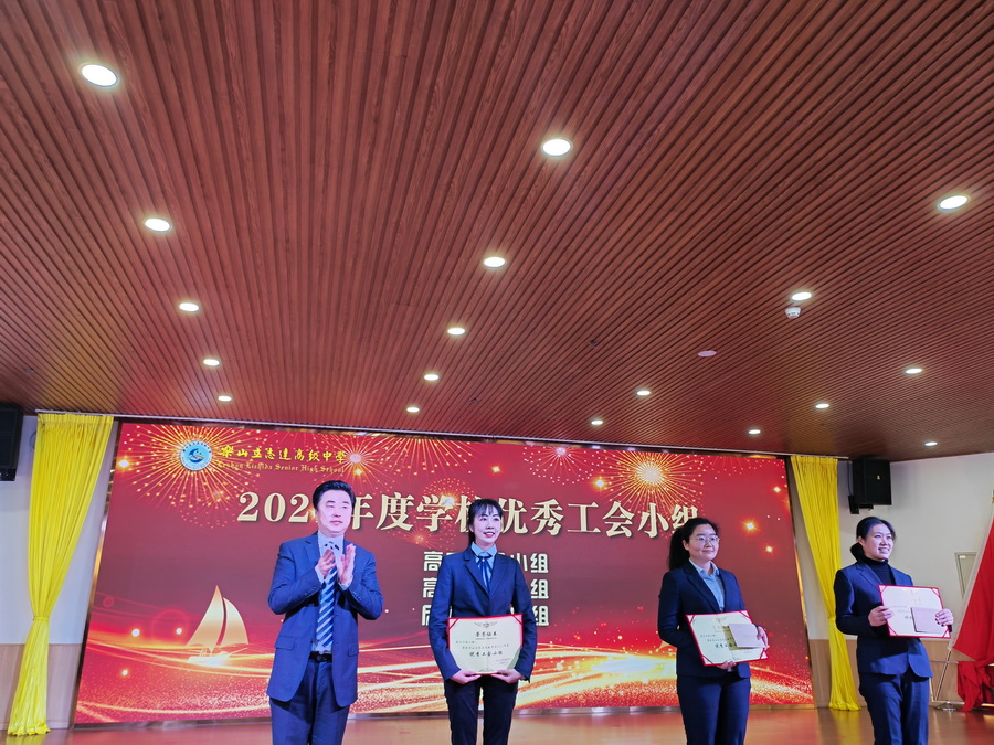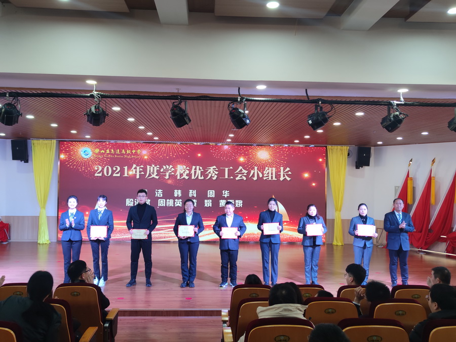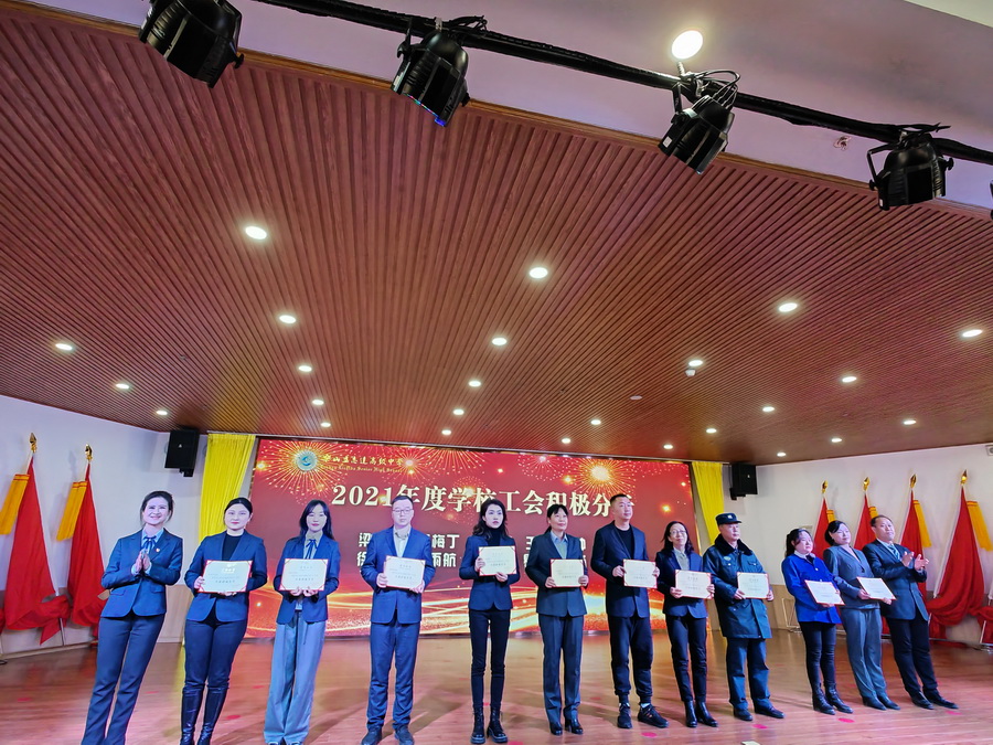 副校长马立新宣读了2021年度学校工会积极分子、优秀工会小组长、优秀工会小组获奖个人和单位。奖项由乐山立志达高级中学党支部书记周静婷、副校长张丰进行了颁发。