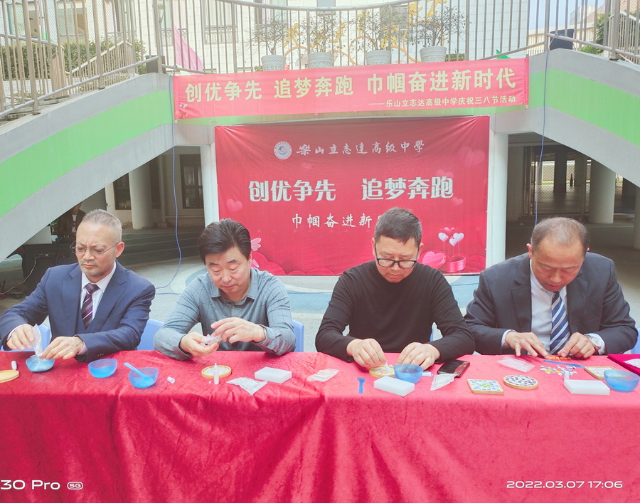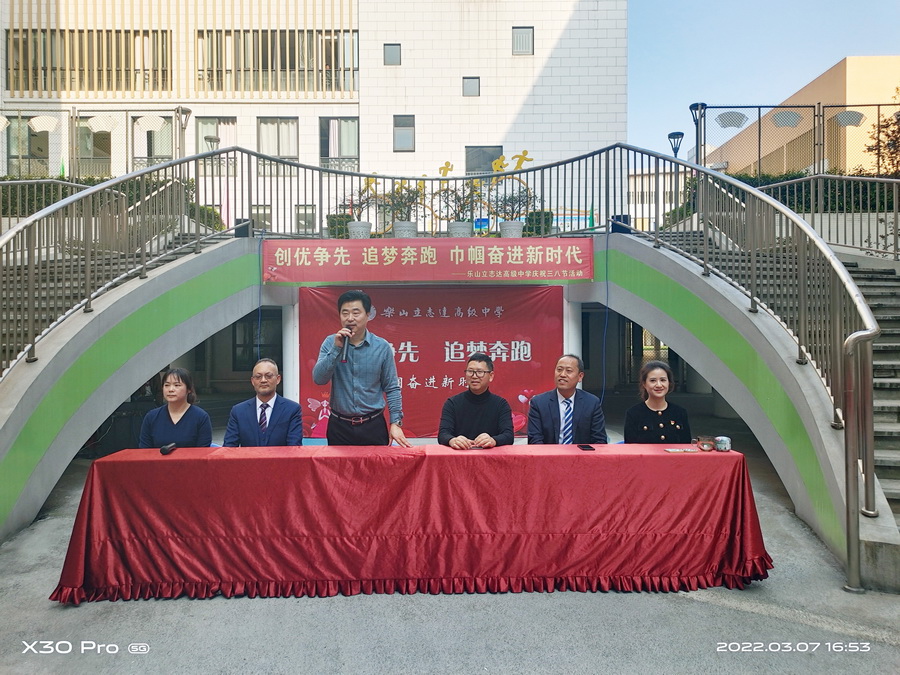 春风有情常拂面,巾帼花开别样红。在第112个“三八”国际妇女节即将来临之际,2022年3月7日下午,乐山立志达高级中学在学校时光广场举行了以“创优争先 追梦奔跑 巾帼奋进新时代”为主题的“三八”国际妇女节表彰暨庆祝活动,会议由魏隽主持。乐山立事达实业有限公司党委副书记、立事达教育总经理张必友,乐山立志达高级中学校长谢鹰、党支部书记周静婷、副校长马立新、副校长张丰出席了活动。