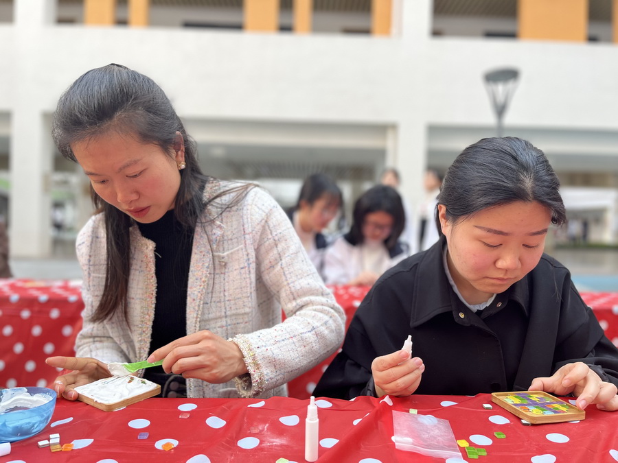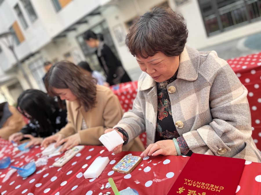 DIY活动将现场气氛推向了高潮,周书记详细讲述自制杯垫的制作步骤,大家跟随着周书记的讲解一步步操作,相互学习,通过自己的创意制作出了属于自己的独一无二的杯垫,现场欢声笑语,其乐融融。