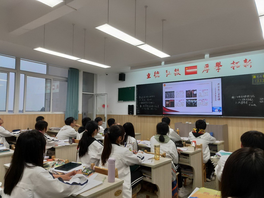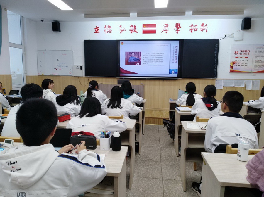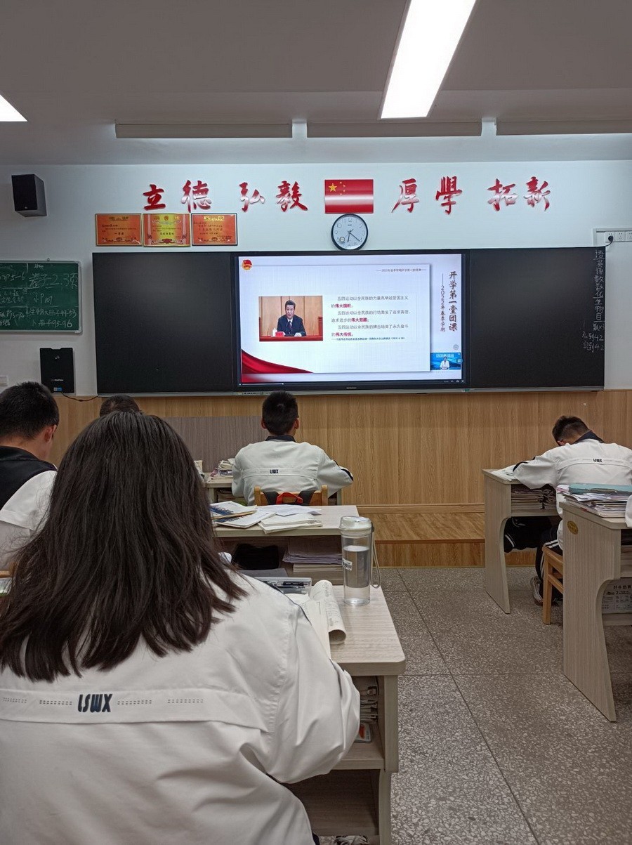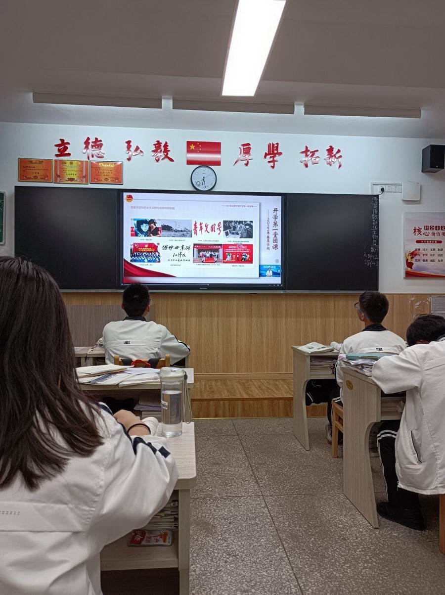 各年级各班学生在教室开展了“春季开学第一堂团课”的学习,再次回顾了党领导中国青年运动的光辉历程,将“请党放心,强国有我”的誓言时刻铭记。