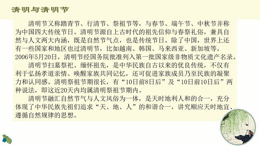 “清明”,兼具自然与人文两大内涵——既是天文上的自然节气点,又是传统的春祭节日。