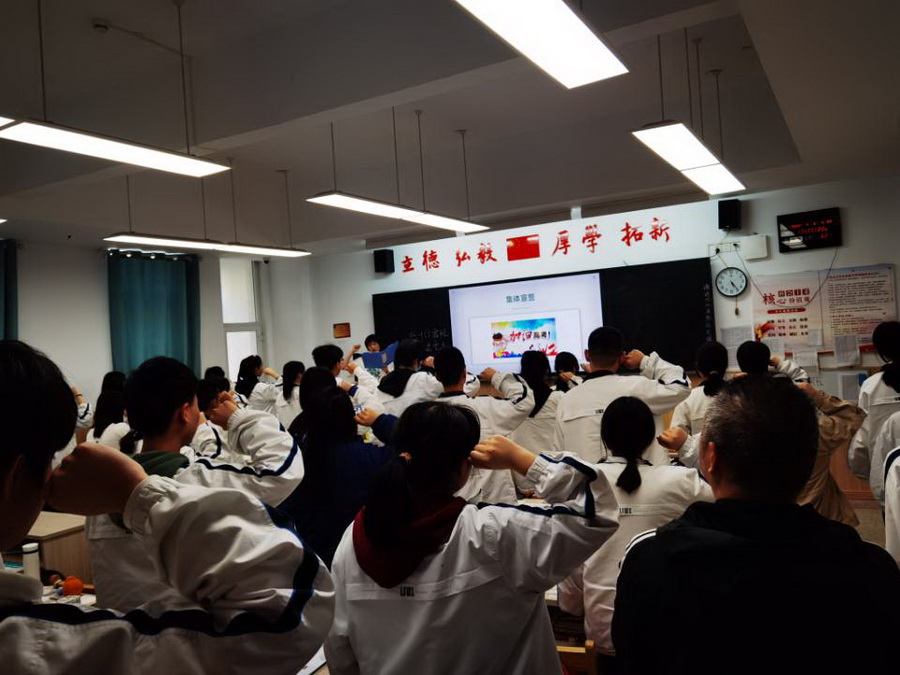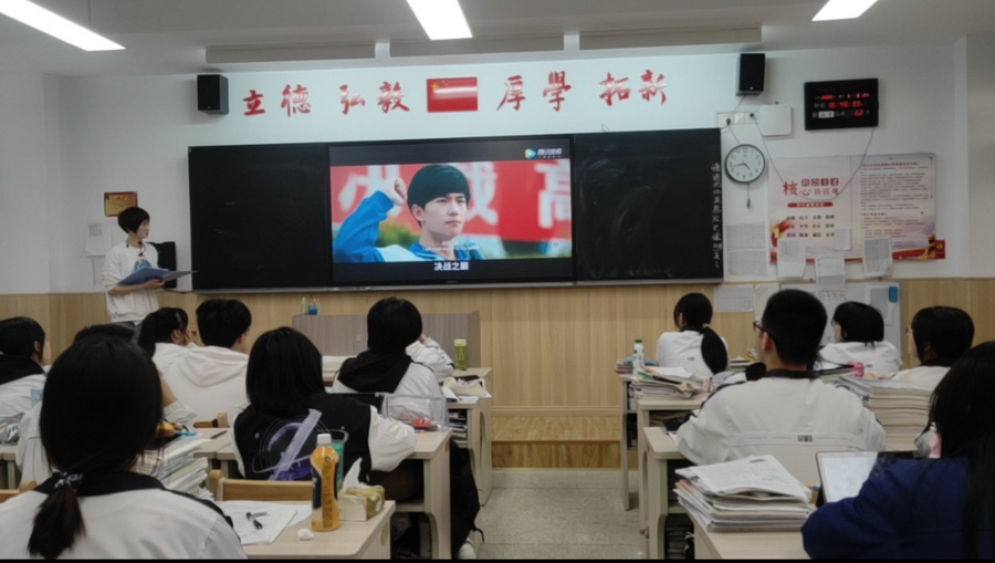 陈老师为同学们播放了《高考加油》的励志视频,视频开头高考学子们的迷茫、挣扎、彷徨引起了同学们的共鸣,视频最后高考学子们为梦想而奋起拼搏的激情渐渐感染了同学们。