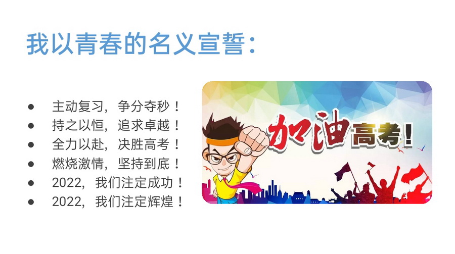 最后全班同学在班主任的带领下,激情澎湃宣誓,喊出了战胜高考的信念和决心!