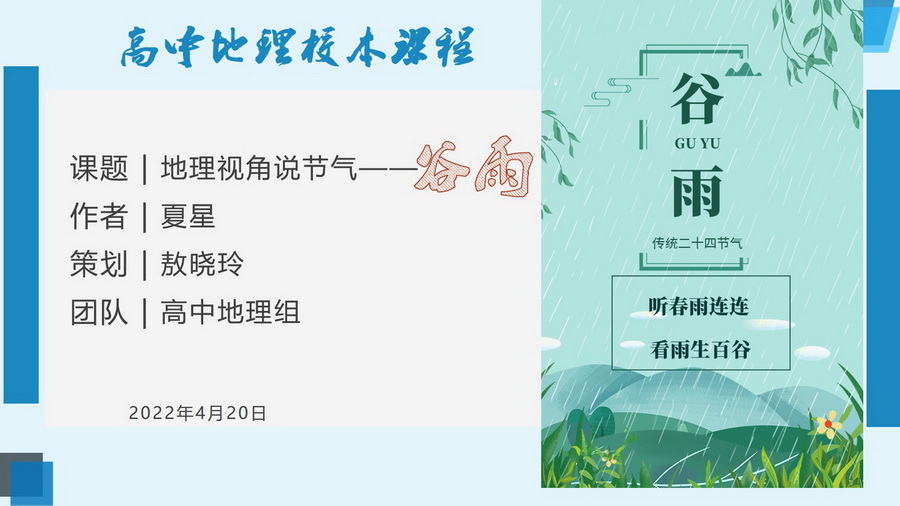 在这“春夏之交,雨生百谷”的时节,让我们一起从地理视角出发,话说谷雨吧!