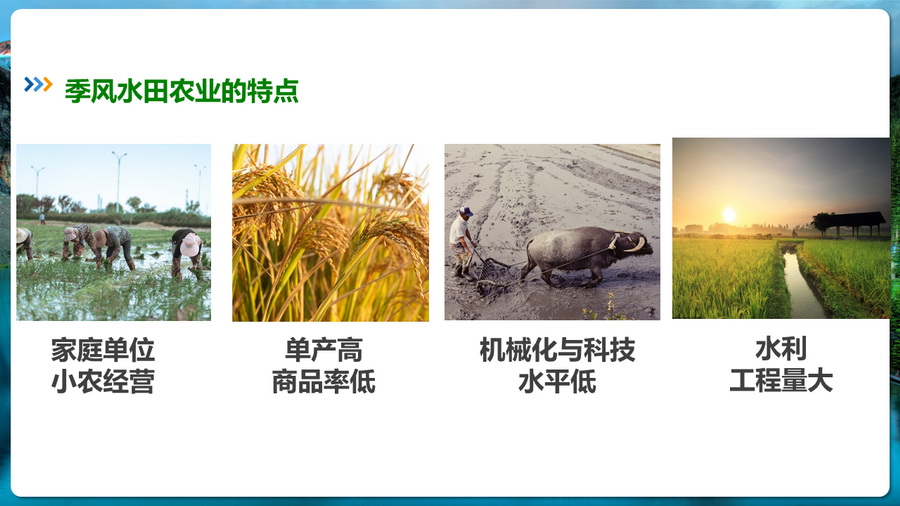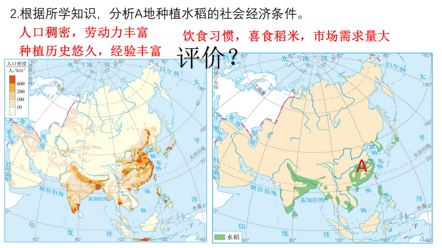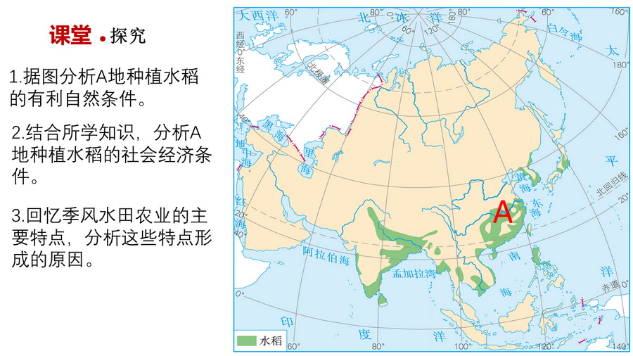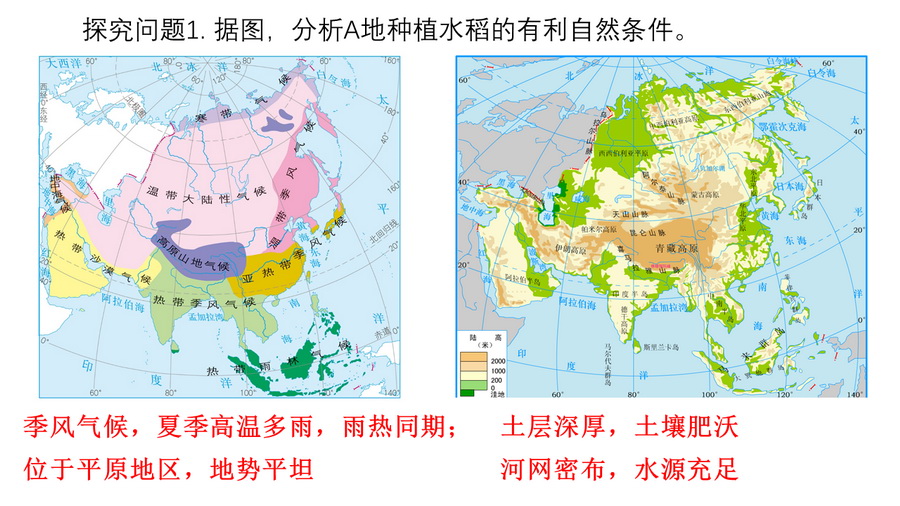 课堂探究——我国南方发展水稻种植业的区位条件。