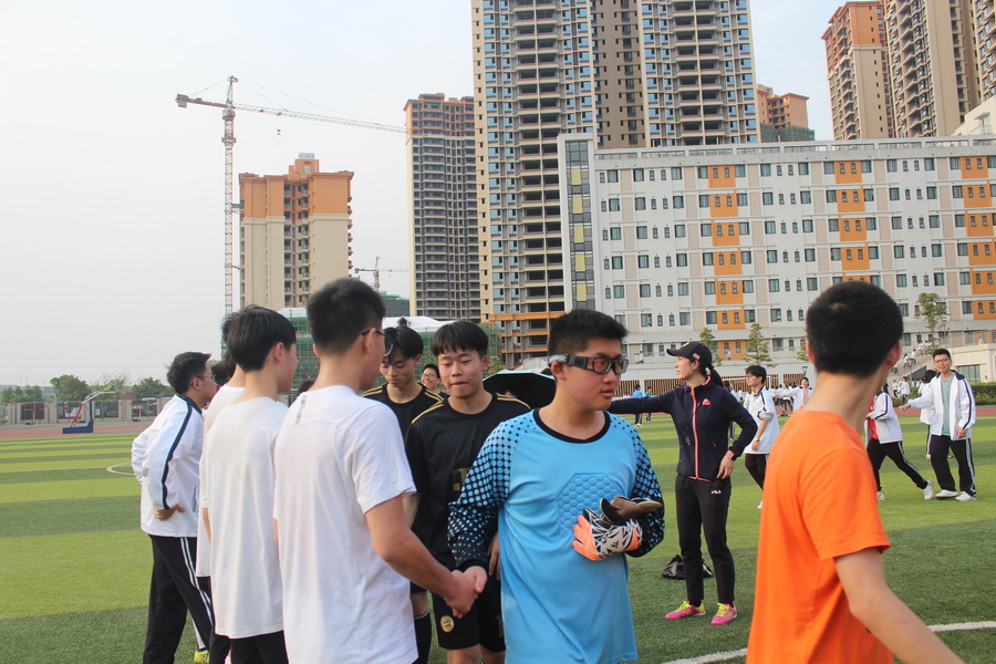 首轮比赛前,各参赛队教练员和同学们积极商讨排兵布阵策略。正式较量开始,运球、远射,一系列动作如行云流水、一气呵成。漂亮的弧线球划过四月春风,稳稳落在了球网里。