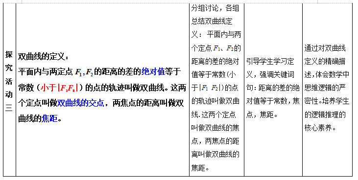 双曲线的定义和标准方程及其探索推导过程