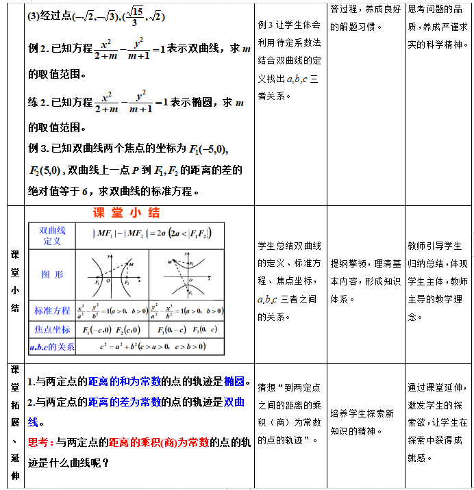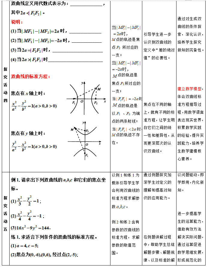 通过教学,使学生熟记双曲线的定义及其标准方程,理解双曲线的定义,体会双曲线的标准方程的探索推导过程;
