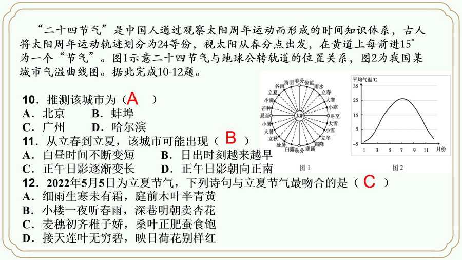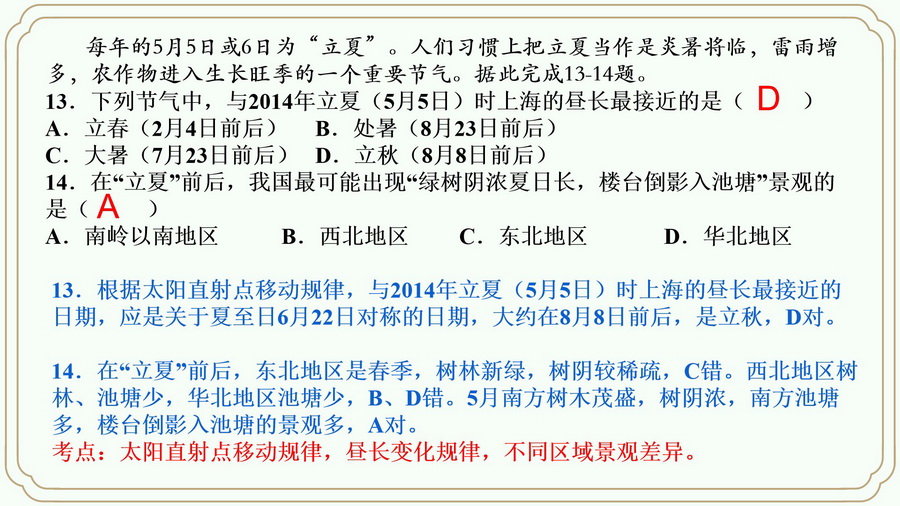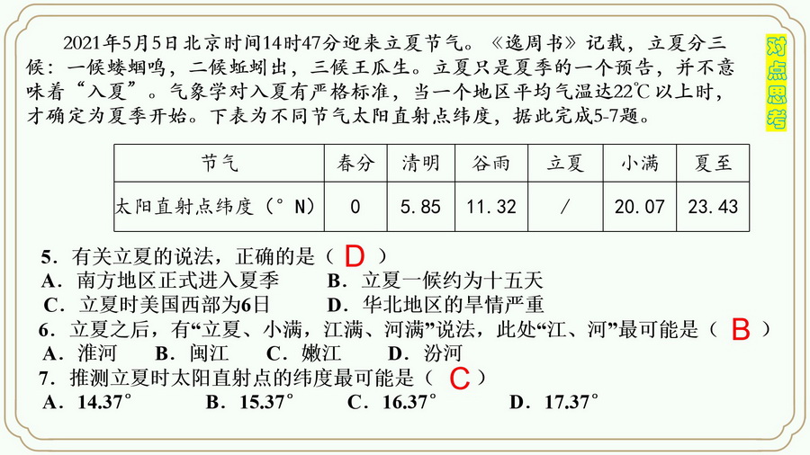 来,对点训练一下立夏之天气。