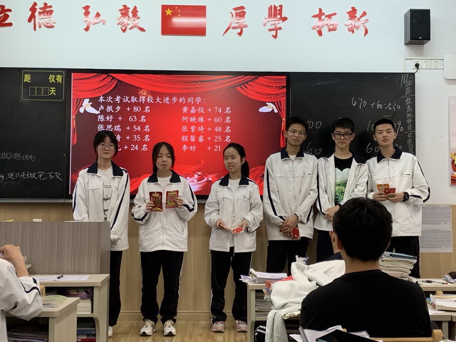 高2023届各班分别召开了学生期中总结大会和班委会。班主任们对各方面表现优异和进步明显的同学给予表彰,指出目标明确、踏实勤奋、吃苦耐劳、勤思善学、高效利用时间是这些同学取得成功的关键,号召全体同学以他们榜样,埋首于脚下,为梦想而奋力拼搏。