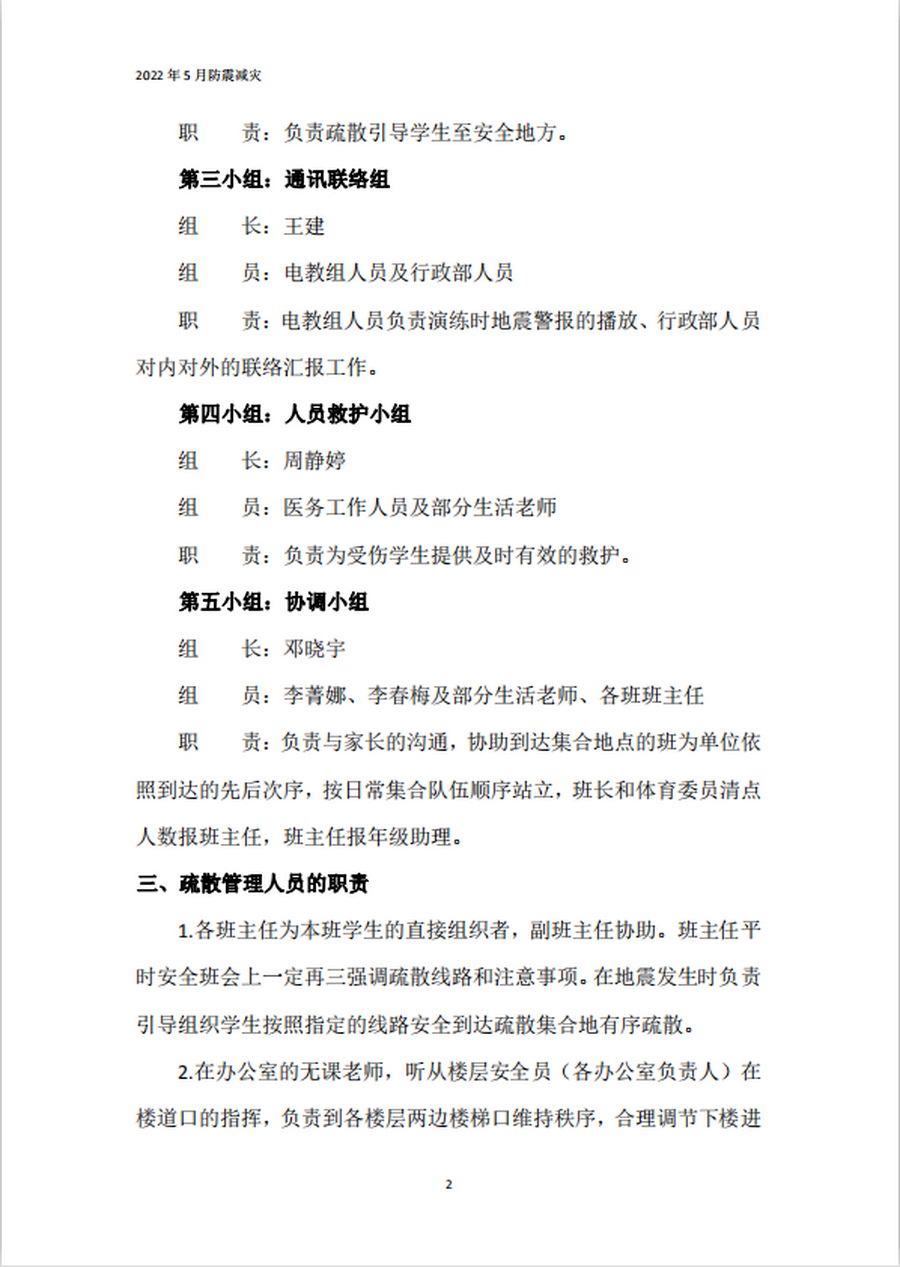 整个过程紧张而有序,2000余名学生和老师在2.5分钟内全部安全、迅速地到达集合地点,收到了预期效果,德育副部长邓晓宇部长对全校师生的表现进行了充分的肯定。