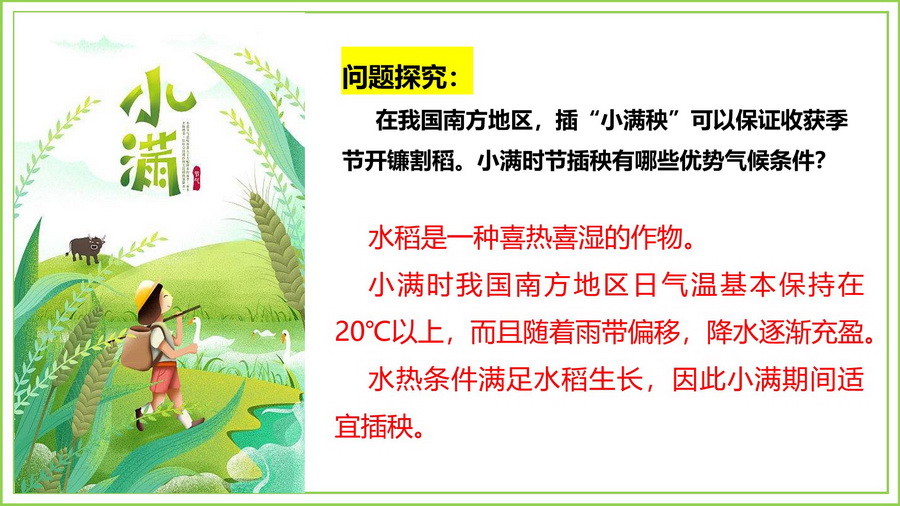 探究我国南方地区小满时节插秧有哪些优势气候条件及发展季风水田农业的区位条件。