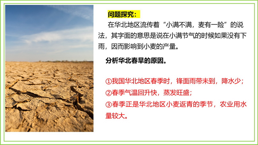 分别探究我国南方地区、北方地区小满前后发生旱灾的原因。