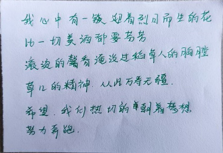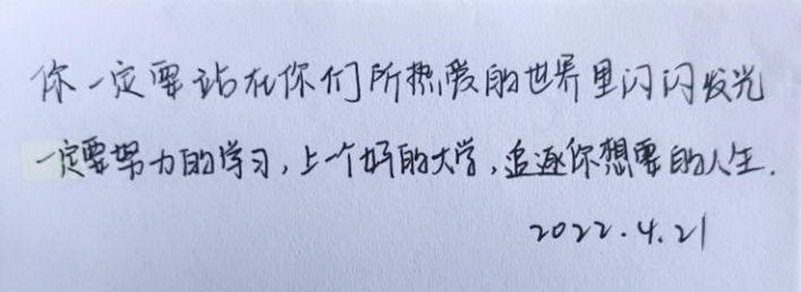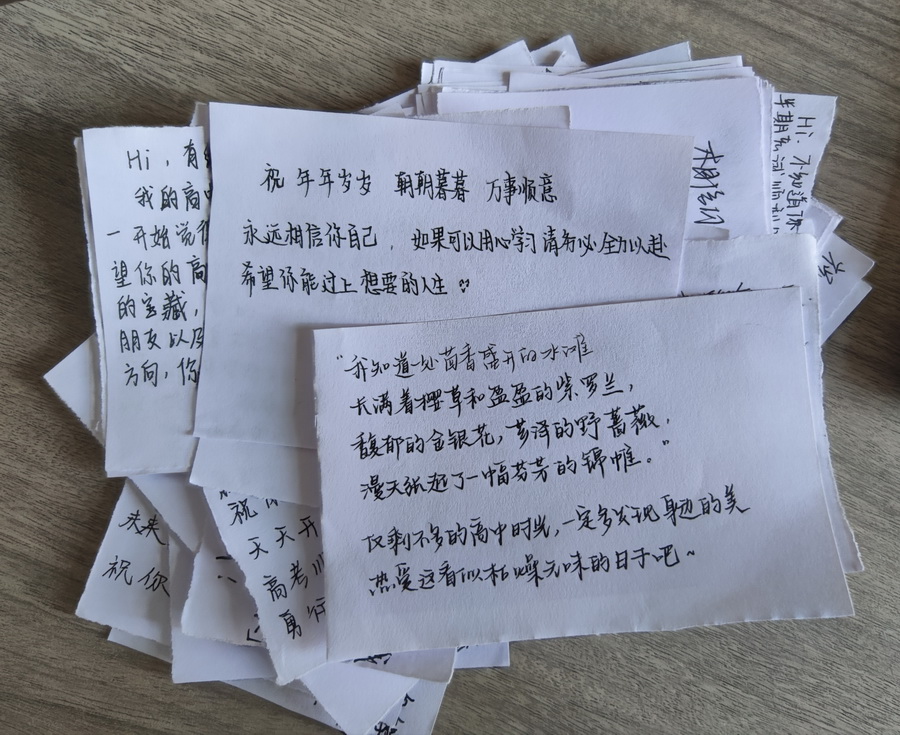 高2023届、高2022届在立志达高中校园生活了两年,他们见证了校园环境文化的变化,在教学楼、食堂、图书馆、操场留下了活跃的身影,也迎来了今年校园围墙边第一批蔷薇花的盛放。不同年级,共同拥有着对未来的向往,高2023届孩子写下祝福与鼓励,为迎战高考的高2022届学长学姐鼓劲。写下的这份文字,给学长也是给自己!