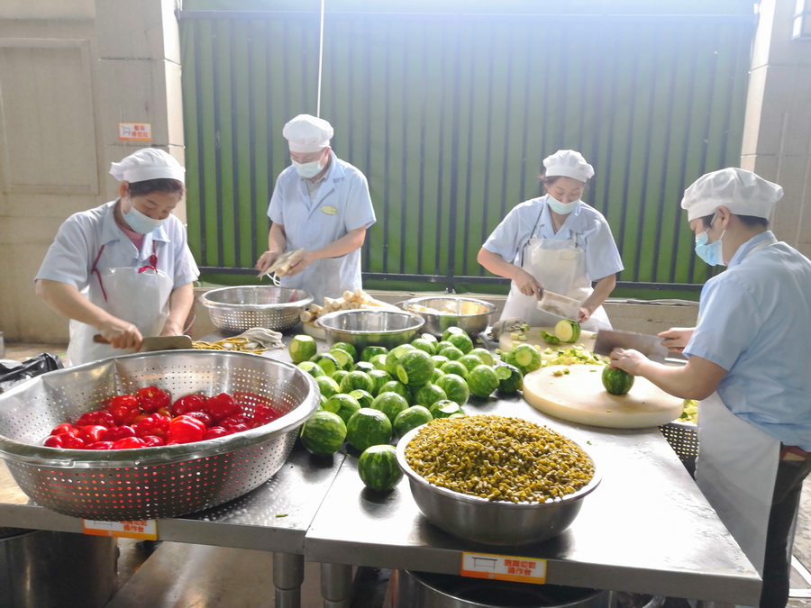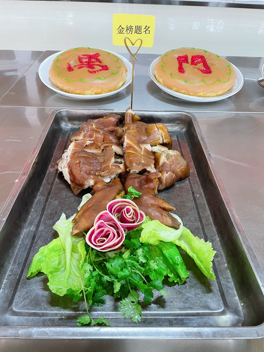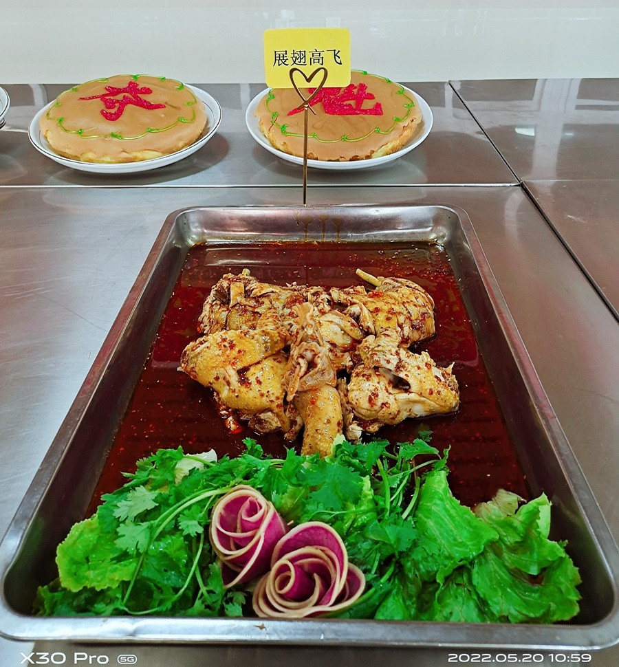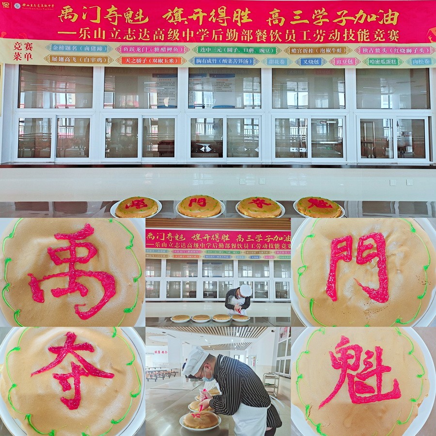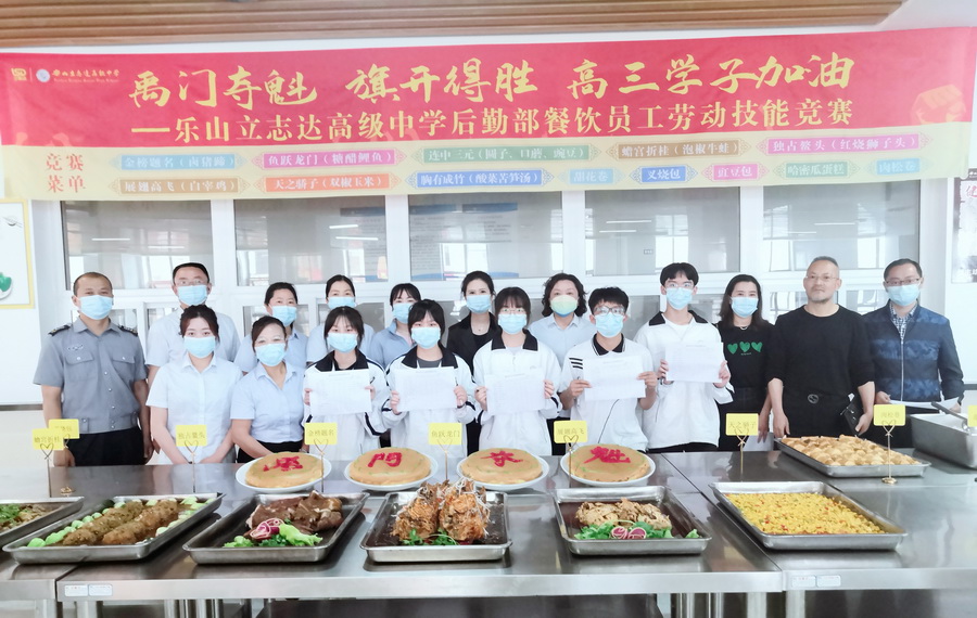 为大力弘扬劳模精神、劳动精神和工匠精神,激发后勤职工的劳动热情和创造活力,营造团结奉献、崇尚实干、争创一流的比学赶超良好氛围,2022年5月20日,乐山立志达高级中学后勤餐饮部在知味堂三楼组织开展了“禹门夺魁,旗开得胜,高三学子加油”为主题的“红五月”劳动技能竞赛。乐山市市中区市场监督管理局张丙恒、李论两位老师亲临现场对活动进行了指导,立志达高中校长谢鹰,支部书记周静婷,副校长张丰、马立新及部分中层干部参加了评审。