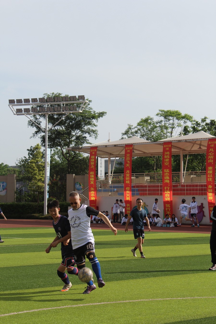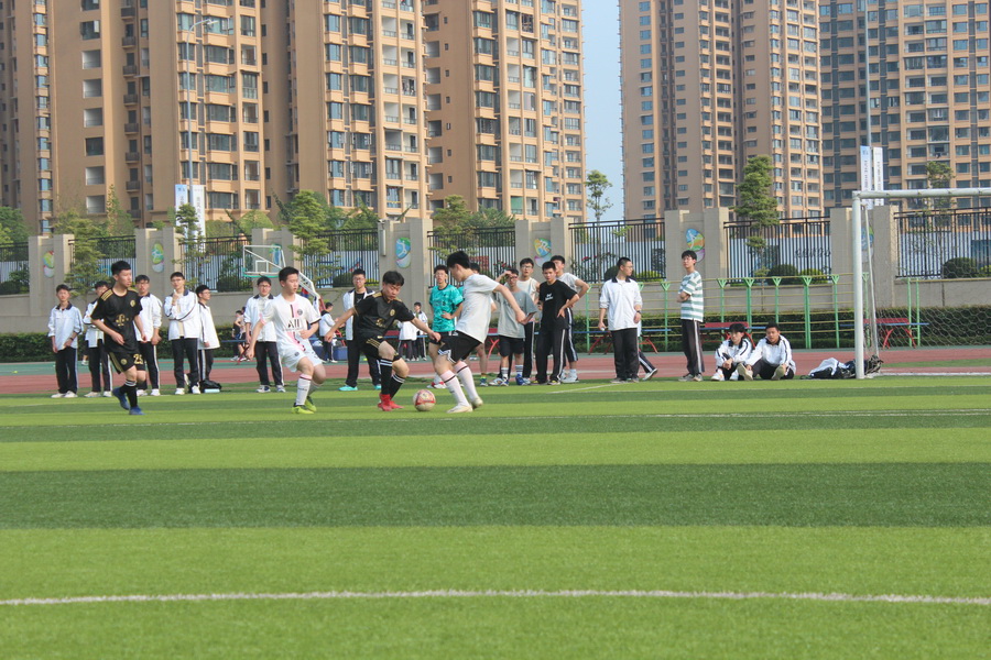 足球赛场上双方的队员们步履飞快,或熟练的运球,或精彩的传球,或漂亮的抢断,或完美的过人,或精准的射门……比赛跌宕起伏,赛场精彩纷呈,洋溢着青春的朝气与活力,高潮不断涌现。师生们用自己的激情和汗水传达着对运动、对生活的热爱,传达着友谊互助的团队精神,秀出了自我、秀出了风采。永不服输的体育精神在他们身上体现得淋漓尽致,每场比赛都会引来场外观战的师生观众们的阵阵喝彩。