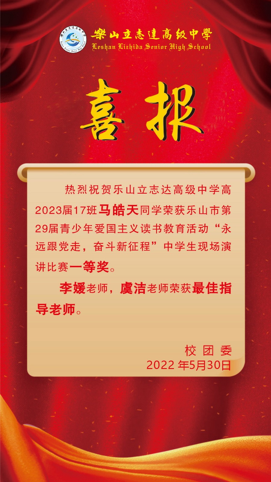 乐山立志达高级中学收看中国共产党四川省第十二次代表大会开幕直播