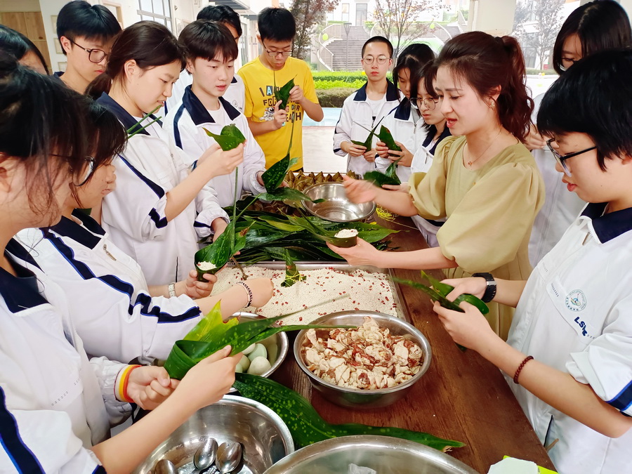 要铭记、要表达、要内省、要创造的“四要”德育方针,是我校美育建设的必修课。传统节日与学生日常生活紧密相连,节日文化作为中华优秀传统文化的重要组成部分,内涵丰富、底蕴深厚、形式多样,是培育和践行社会主义核心价值观的重要文化资源。借助传统节日,使社会主义核心价值观融入节日文化,对于形成有利于培育和弘扬社会主义核心价值观的美育情景和美育氛围,无疑对点润学生美学情怀和劳动教育具有巨大的助推作用。因此,学校应时举办了“包粽子·庆端午”美育实践活动。