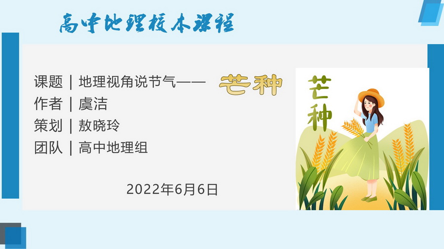 有芒的麦子快收,有芒的稻子可种。人生,不会辜负我们的每一滴汗水。让我们一起从地理视角,探寻芒种吧!