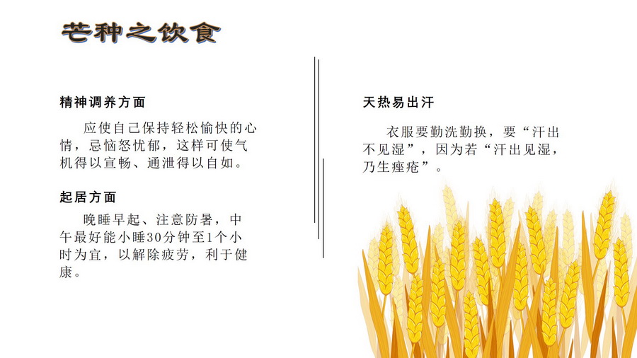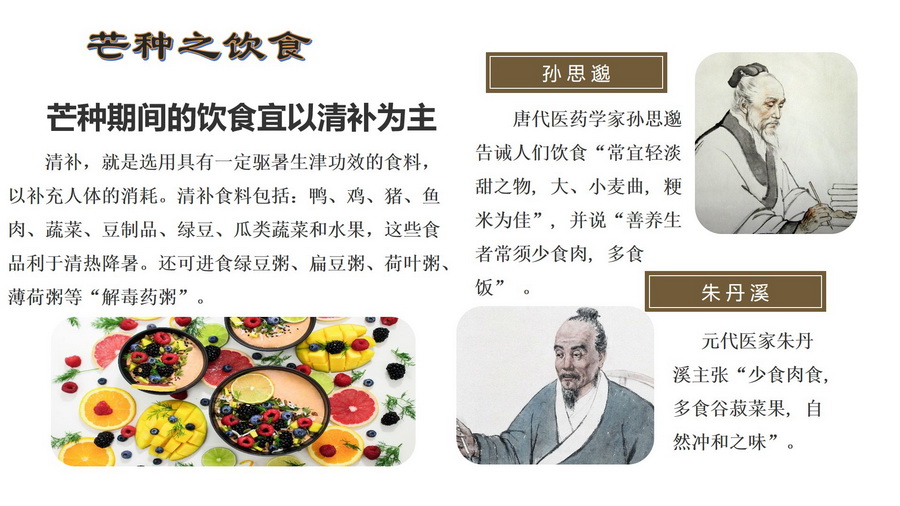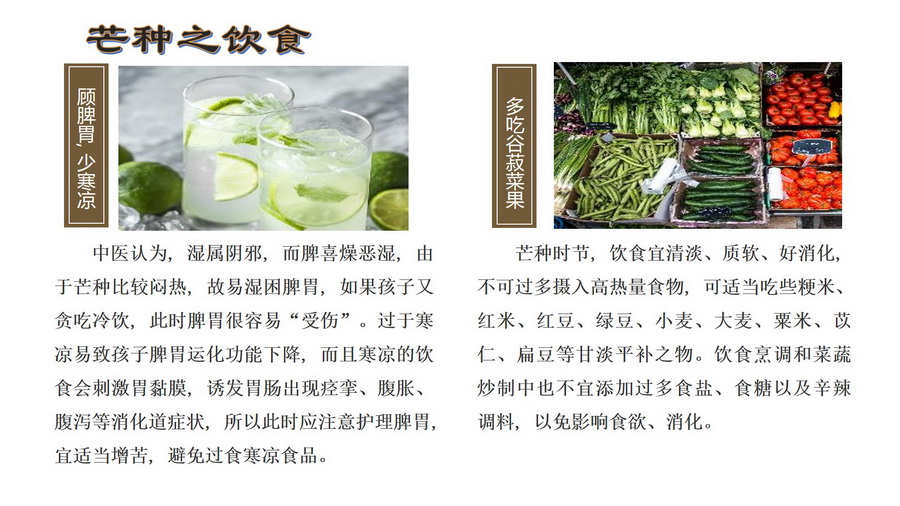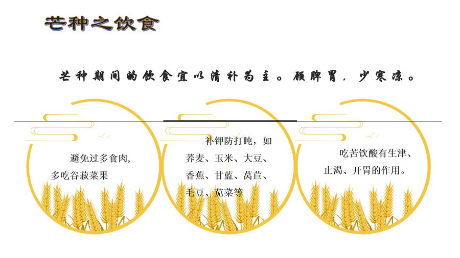芒种期间的饮食宜以清补为主。顾脾胃, 少寒凉。
