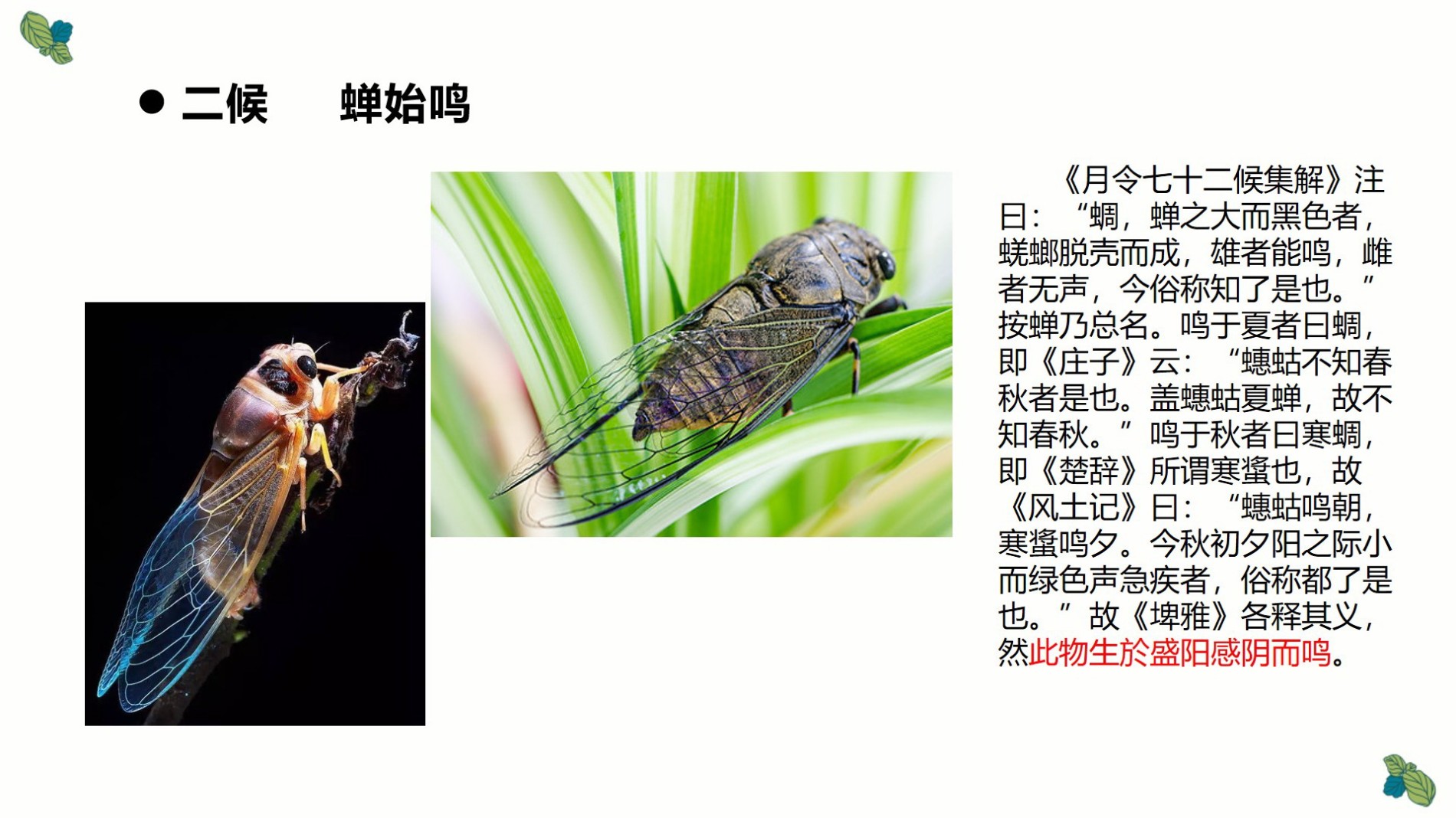 “一候,鹿角解;二候,蝉始鸣;三候;半夏生”你知道其中含义吗?看人们发现了大自然中动植物的生长有哪些神奇规律。