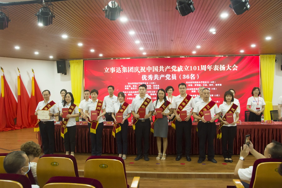 大会由三个部分组成,分别是:中共乐山立事达实业有限公司委员会换届选举党员大会;立事达集团庆祝中国共产党成立101周年表彰大会;立事达集团庆祝中国共产党成立101周年大会暨专题党课辅导。换届选举党员会议由公司党委副书记郑小陵同志主持,表彰大会和专题党课辅导由党委副书记张必友同志主持。