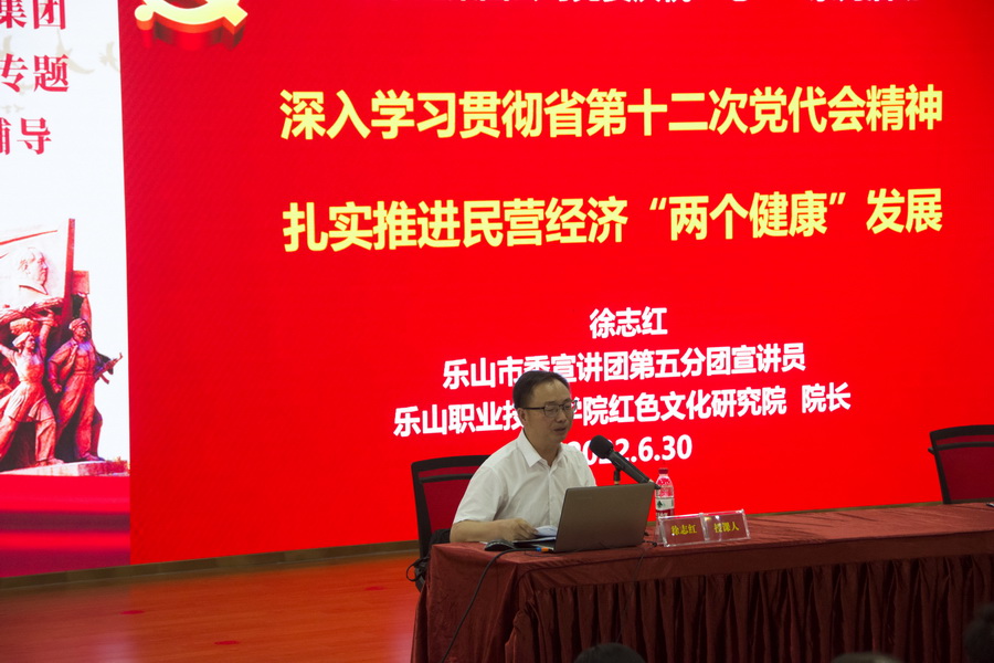 公司借隆重庆祝建党101周年之机,邀请乐山市委宣讲团第五分团宣讲员徐志红教授为公司全体党员解读省第十二次党代会精神。