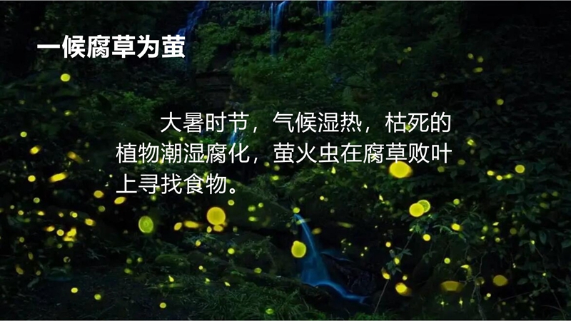 大暑三候:一候腐草为萤,二候土润溽暑,三候大雨时行