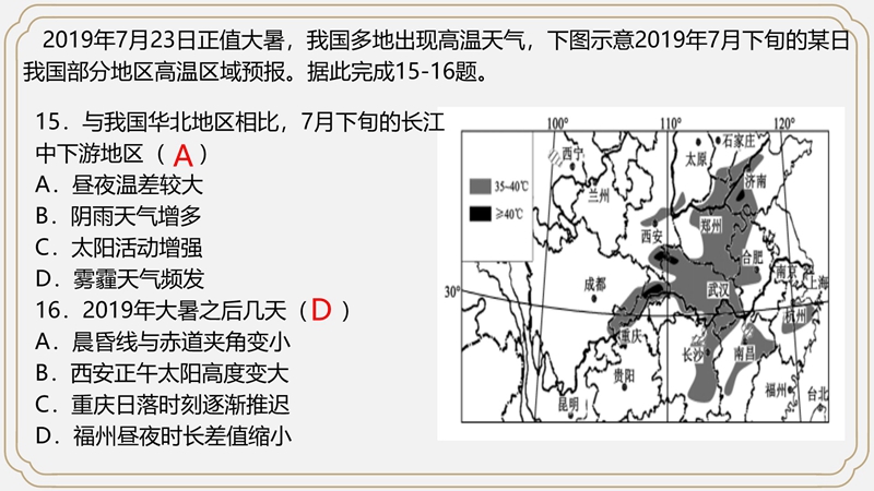 白居易在《消暑》中说道:“何以销烦暑,端居一院中。眼前无长物,窗下有清风。热散由心静,凉生为室空。此时身自得,难更与人同”,让我们一起从地理视角,来迎接“热情”的大暑吧!