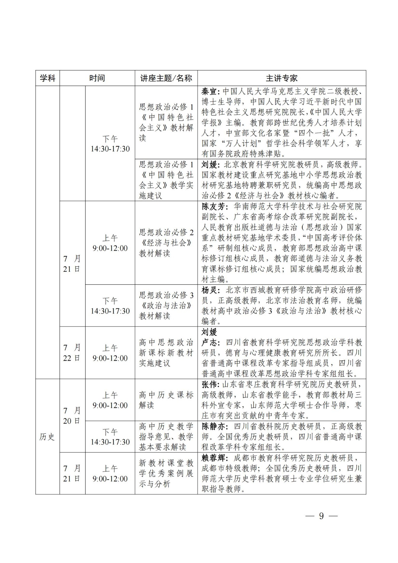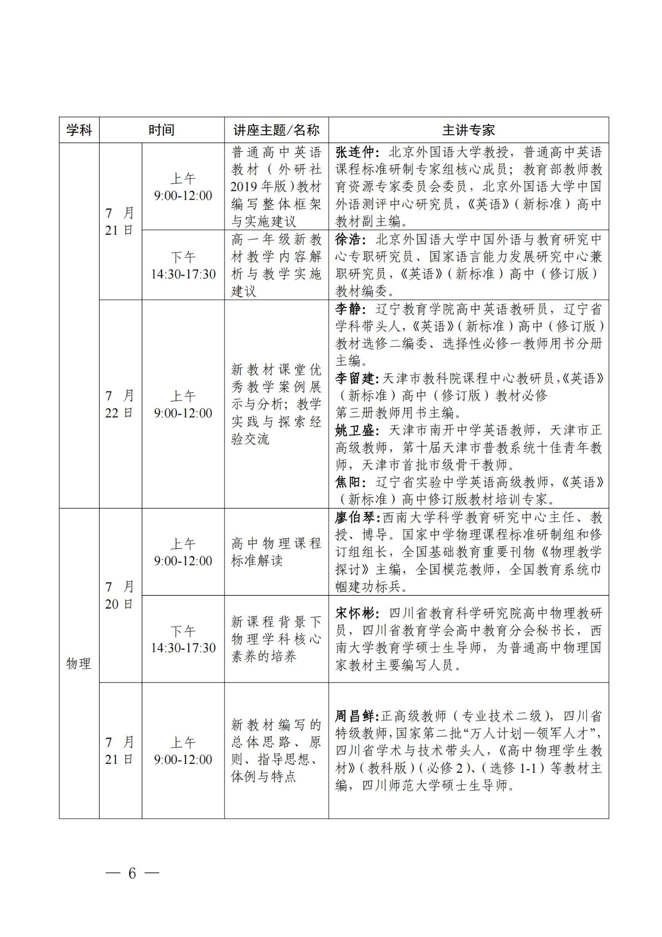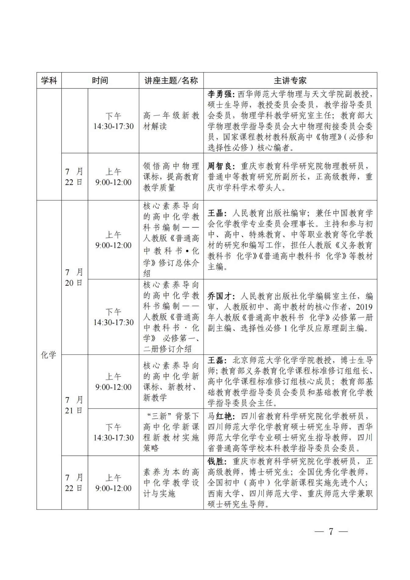 立志达高中高2025届参加四川省新教材研训安排