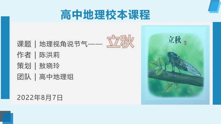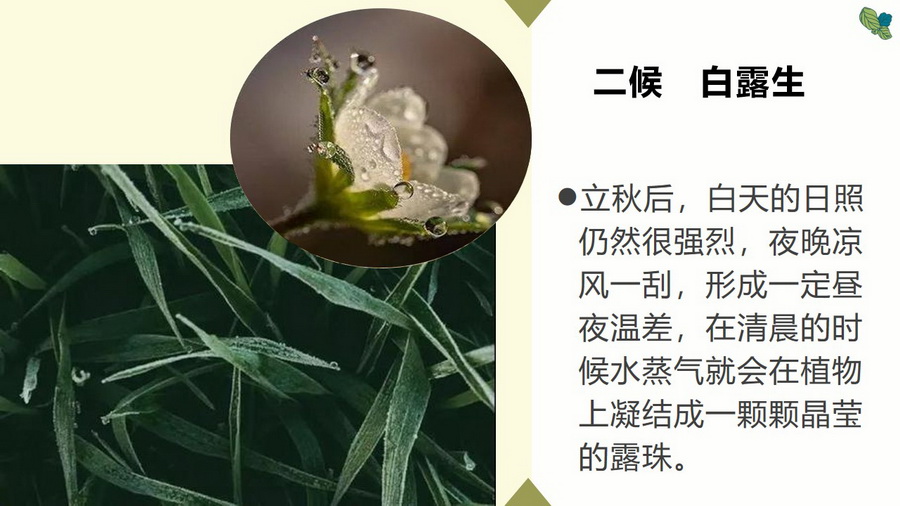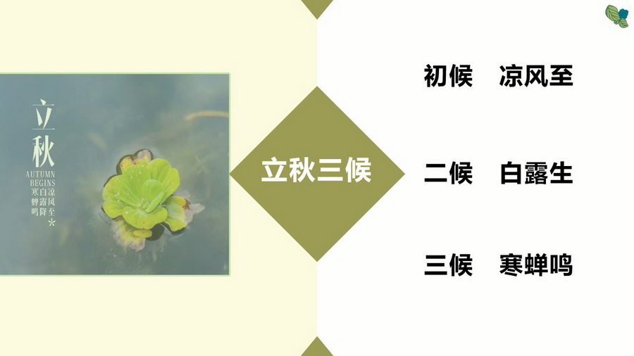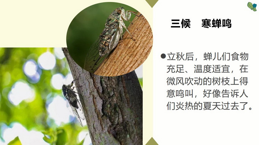 我国古代将立秋分为三候:“初候凉风至,二候白露生,三候寒蝉鸣。”