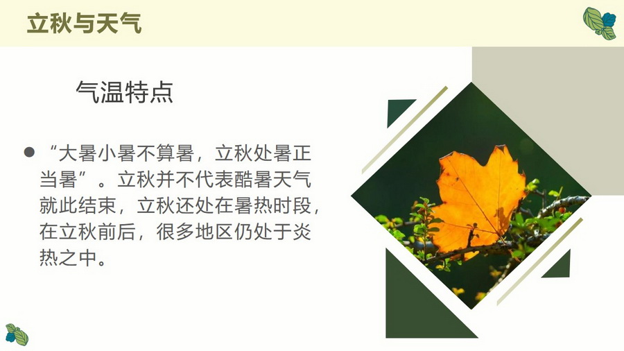 立秋一定会“入秋”吗?“烦暑郁未退,凉飙潜已起”,立秋预示着秋天的脚步即将到来,但此时我国大多数地区的气温仍然较高,要过一段时间才能真正进入秋季。