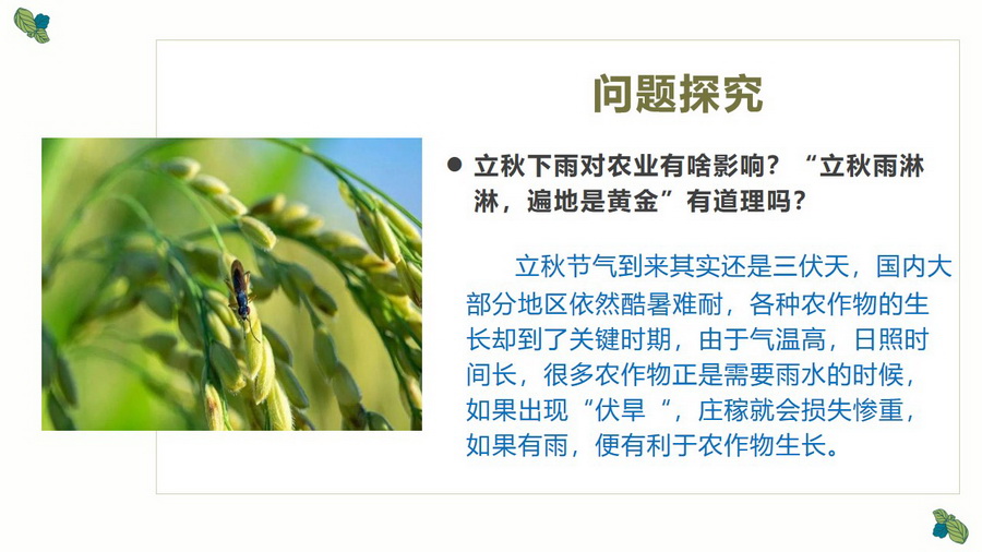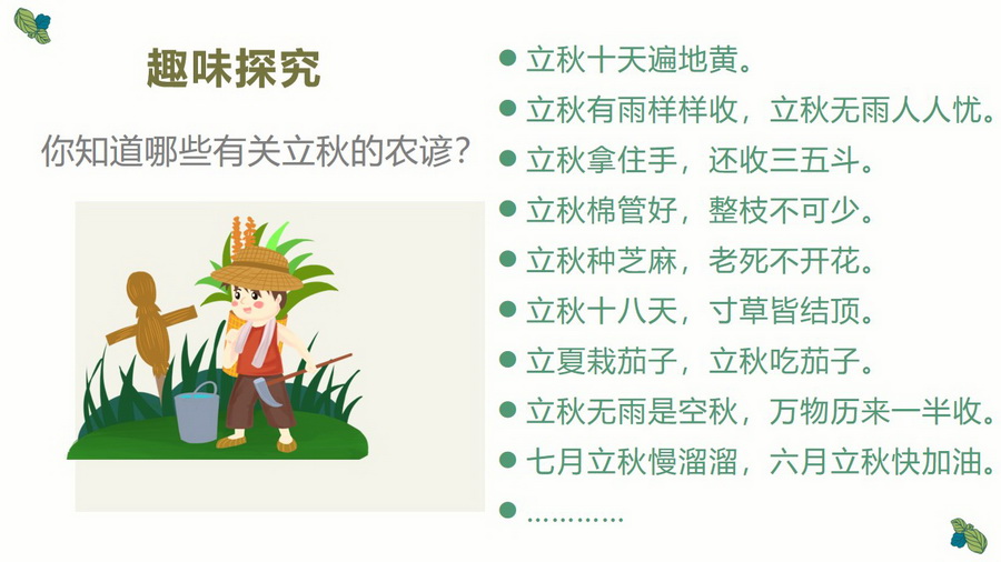 立秋是万物开始从繁茂成长趋向萧瑟成熟,是农民非常关注的一个节气,对农事具有十分重要的意义。