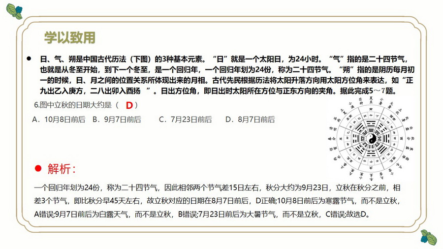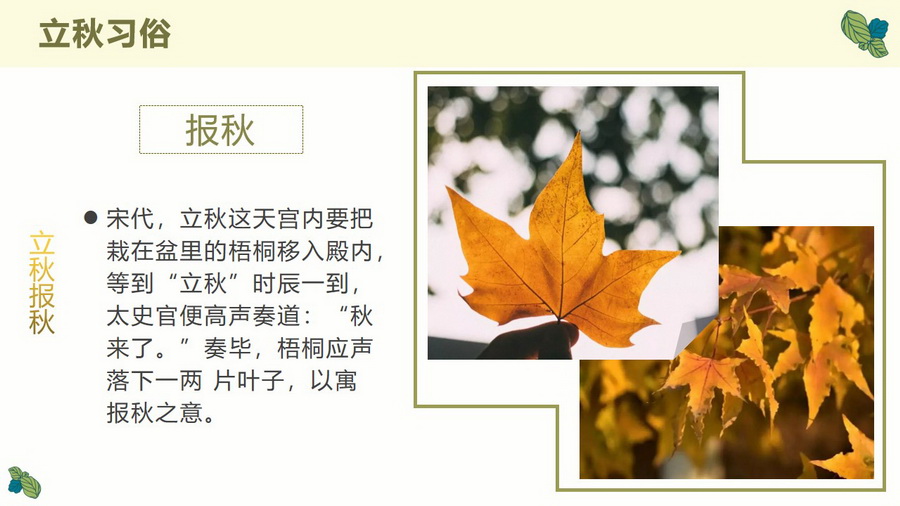 “睡起秋色无觅处,满阶梧桐月明中” ,到了立秋梧桐树开始落叶,因此才有“一叶知秋”的成语。