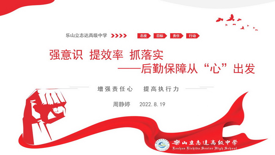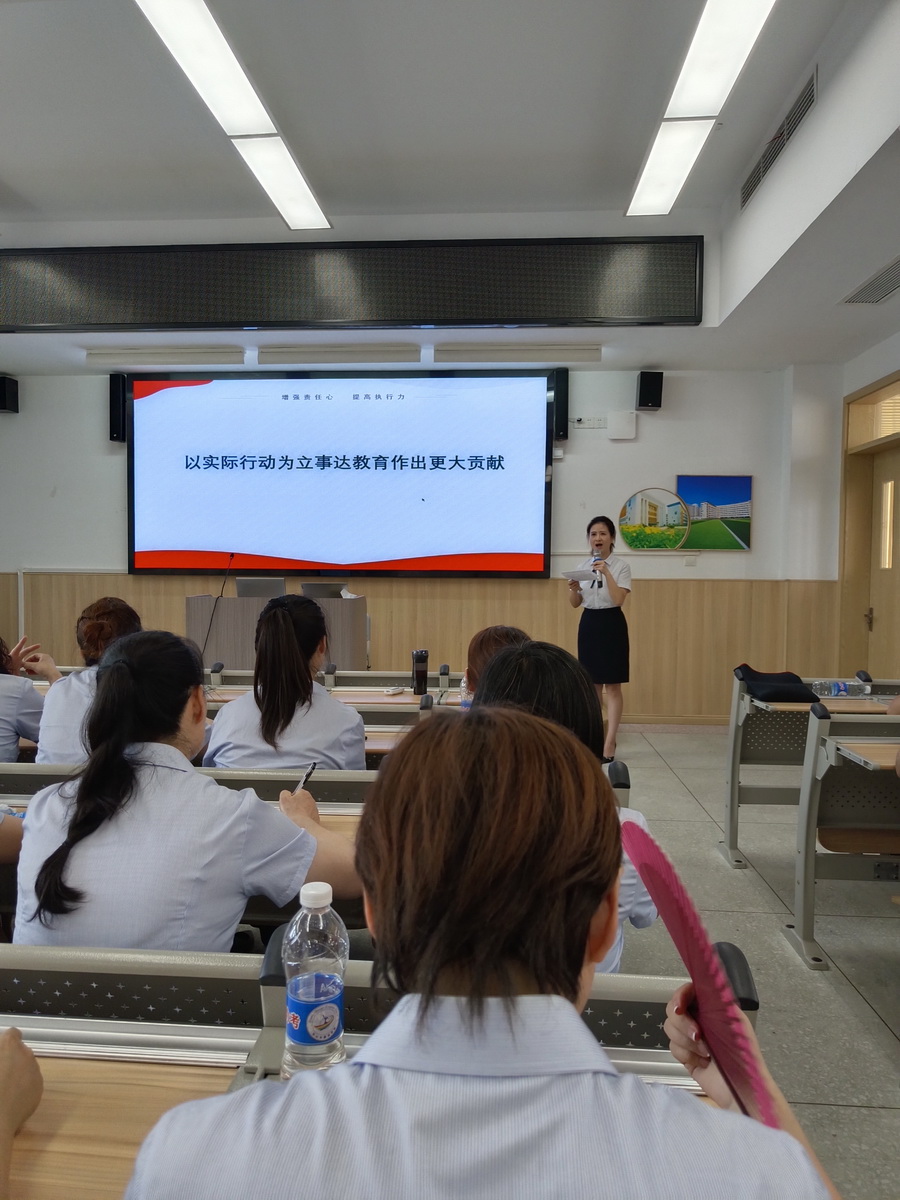 党支部书记周静婷以《强意识 提效率 抓落实—后勤保障从“心”出发为主题》,要求全体员工:一是优质服务从“心”开始,节能降耗、开源节流,共促企业、学校安全稳定建设、队伍建设;二是强化服务意识,加强效能建设,以“团结、协作、高效″为目标,推进后勤文化建设;三是突出问题导向、精细循脉问诊流程,推动后勤各项工作提质增效、跨越提升。以实际行动为立事达教育作出更大贡献。