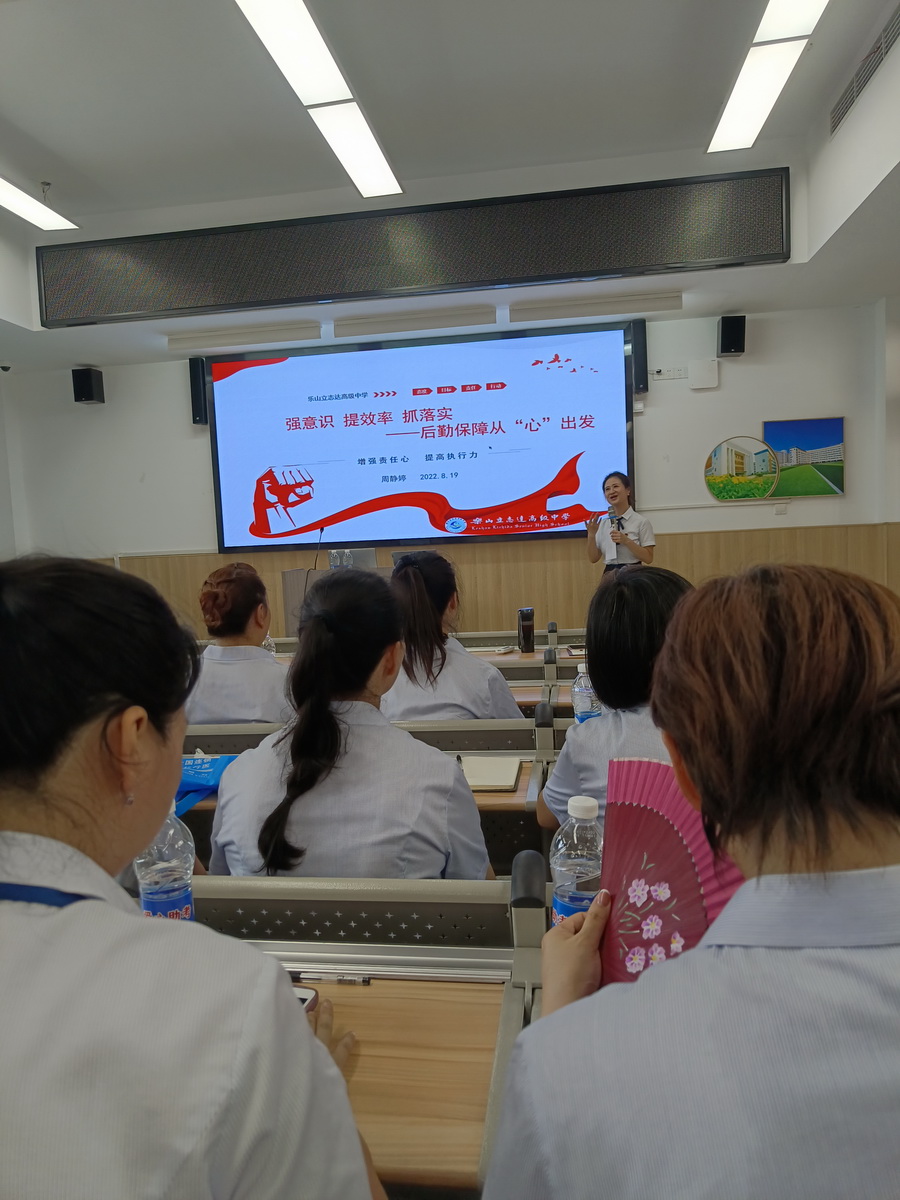 精而益求其精,备而益求其备。为做好开学前各项保障服务工作,提升后勤员工岗位实操能力,2022年8月19日,乐山立志达高级中学后勤部在阶梯教室组织召开了后勤员工开学培训会。党支部书记周静婷,后勤部长季颜青及全体后勤员工参加了会议。乐山市市中区市场监管局绿心所所长龙勇,工作人员李论出席会议并开展专项培训。