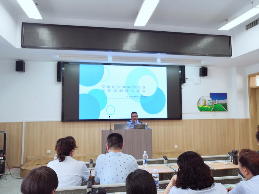 乐山市市中区市场监管局绿心所所长龙勇、绿心所工作人员李论为员工深入讲解了《疫情防控期间学校食堂的管理制度与要求》,并从学校食堂原材料采购管理、学校食堂人员安全管理、学校食堂的食品加工操作等方面进行了培训;同时,要求全体员工踏实履职、超前行动,保障各项开学准备工作有条不紊开展,以实际行动筑牢后勤服务保障线,极力为师生返校营造安全、舒适、温馨的校园环境。
