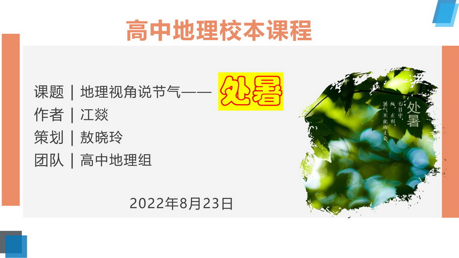 “究是行秋地,那更处暑时。”《中国天文年历》显示,北京时间2022年8月23日11:15:59将迎来“处暑”节气。处暑,即为“出暑”,是暑将退伏潜处,炎热将离开。所以,亲爱的同学们,抛却酷暑中久积的浮躁吧,回归校园,让静谧与沉思交织,开始新一轮的赛场追逐!