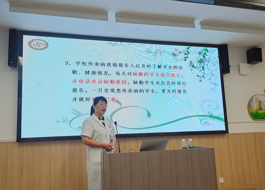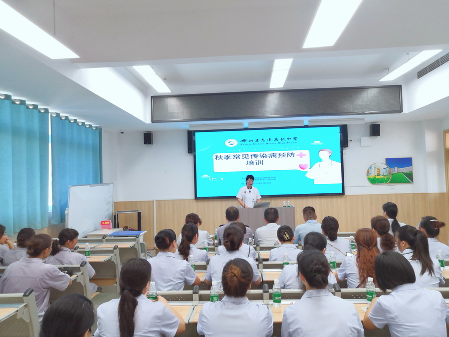 秋冬季是流感、水痘、流行性腮腺炎等传染病的高发季节,为切实做好秋冬季常见传染病的预防知识宣传教育,防范新冠疫情下叠加风险的发生,筑牢疫情及传染病防控壁垒,确保师生校园健康生活环境,2022年8月23日,乐山立志达高级中学卫生副校长(乐山瑞和医院副院长)杨佳丽到校,在阶梯教室就疫情防控及秋季常见传染病预防知识对后勤员工进行培训。
