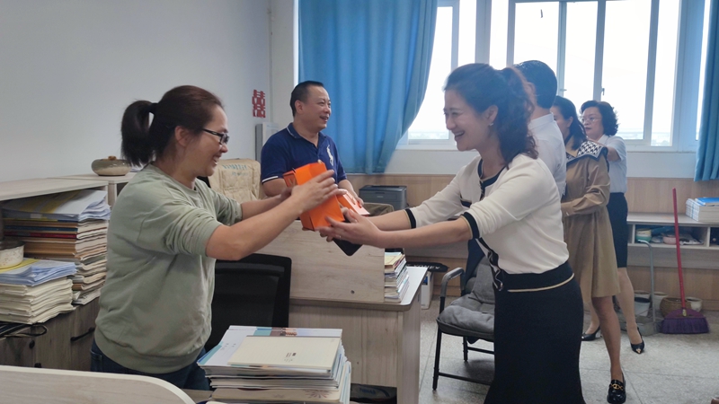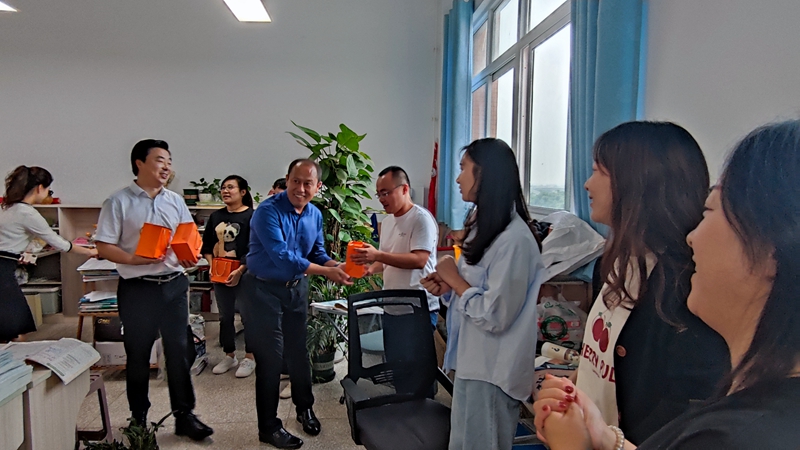 因此,谢校长每到一个办公室都会送上最诚挚的节日问候“老师们节日快乐,中秋吉祥!”,与学校党政工团干部一起热情的送上学校工会精心挑选的节日礼物。