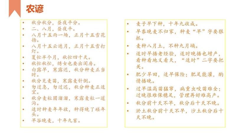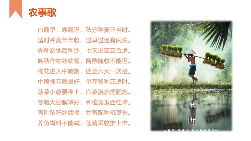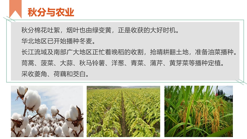 “白露早,寒露迟,秋分种麦正当时。”秋分是秋收、秋耕、秋种的“三秋”大忙时节 。